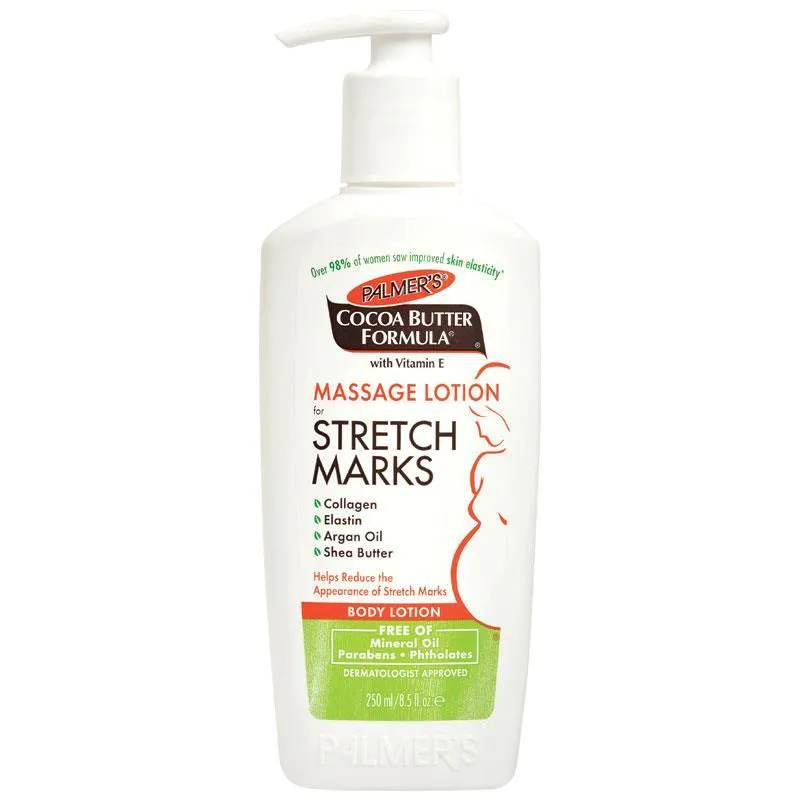 Stretch marks can form on skin when the dermis loses its supporting fibres, and as rapid skin growth occurs, it can become stretched and tear. Palmer's Cocoa Butter Formula is a proven and natural formula that is dermatologist tested, safe for pregnancy and uses a powerful mix of ingredients that when combined, work to significantly improve the elasticity and suppleness of stretching skin.