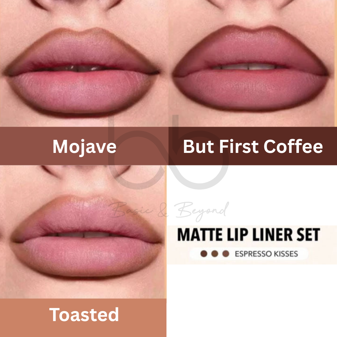 SHEGLAM So Lippy Lip Liner Set -Expresso Kisses is your ultimate lip essential for creating flawless, defined looks. This 3-piece set features soft matte brown lip liners that glide on effortlessly with a mousse-like texture, delivering bold pigment and a velvety matte finish.
