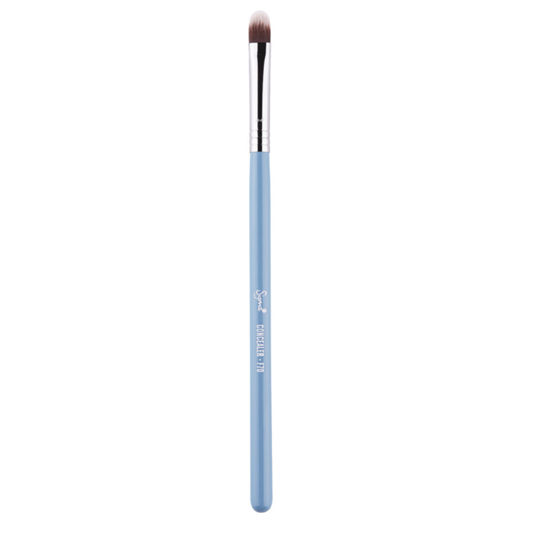 Achieve flawless skin with the Sigma F70 Concealer Brush – Bunny Blue, your go-to tool for precise spot-concealing and under-eye brightening. Designed with ultra-soft Sigmax® synthetic fibers, this small, flat brush blends all types of concealers like liquid, cream, or stick with ease and precision.